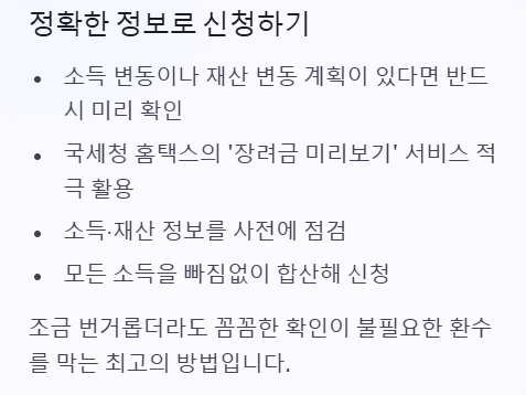 근로장려금 환수를 예방하는 가장 확실한 방법은 '정확한 정보'로 신청하는 것입니다. 특히 소득 변동이나 재산 변동 계획이 있다면 반드시 미리 확인해야 합니다.