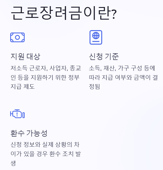 근로장려금은 저소득 근로자, 사업자, 종교인 등을 지원하기 위해 정부가 지급하는 제도입니다.