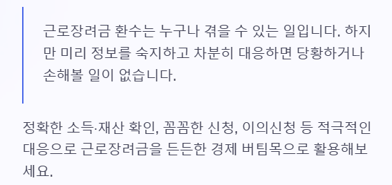 근로장려금 환수는 누구나 겪을 수 있는 일입니다. 하지만 미리 정보를 숙지하고 차분히 대응하면 당황하거나 손해 볼 일이 없습니다.