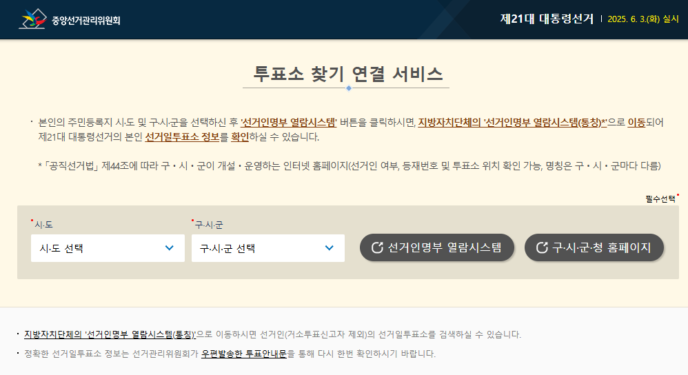중앙선거관리위원회 홈페이지에서 투표소를 쉽게 확인할 수 있습니다.