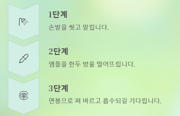 | 2단계 | 앰플을 한두 방울 떨어뜨립니다 |