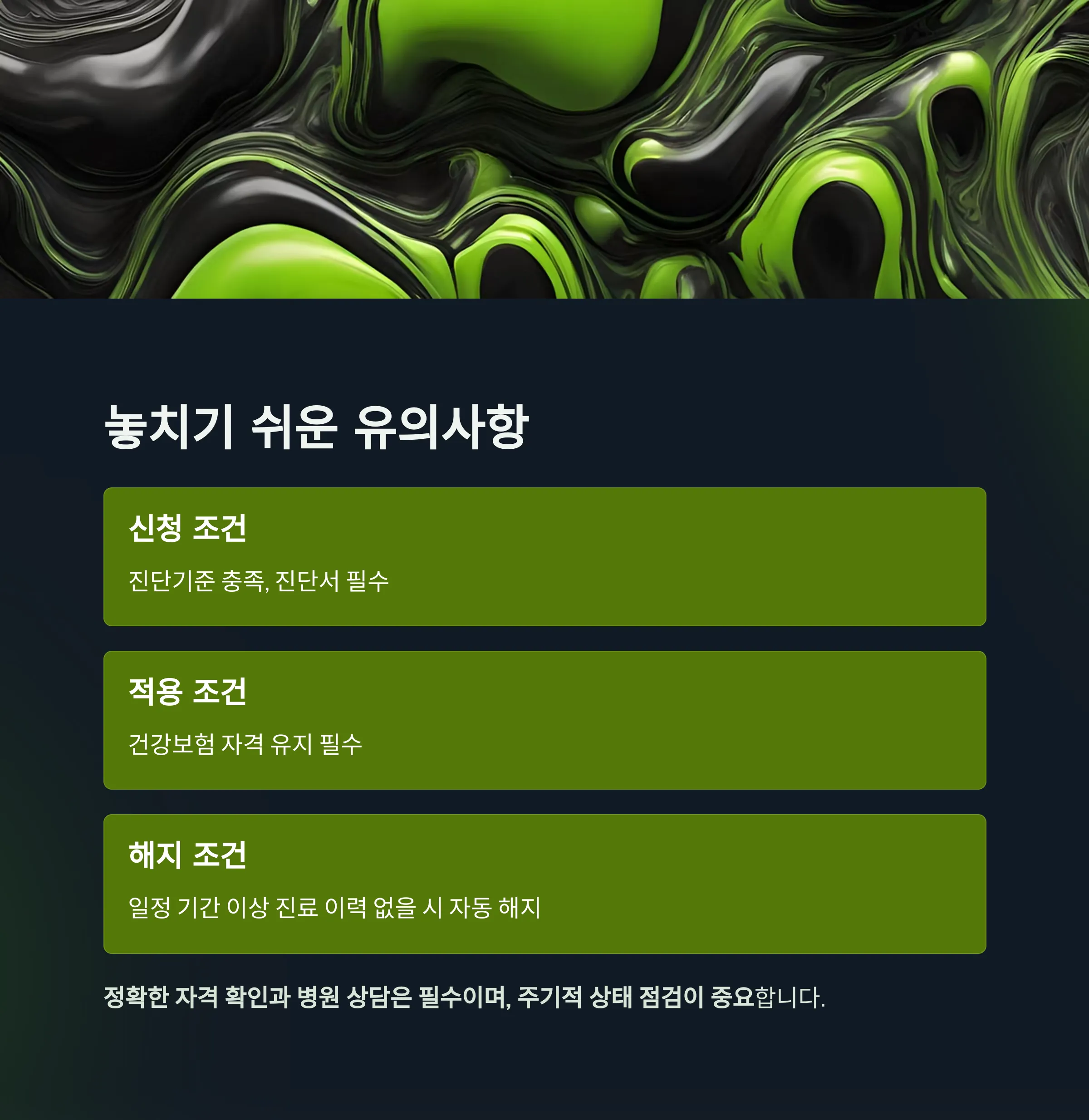 정확한 자격 확인과 병원 상담은 필수이며, 주기적 상태 점검이 중요합니다.