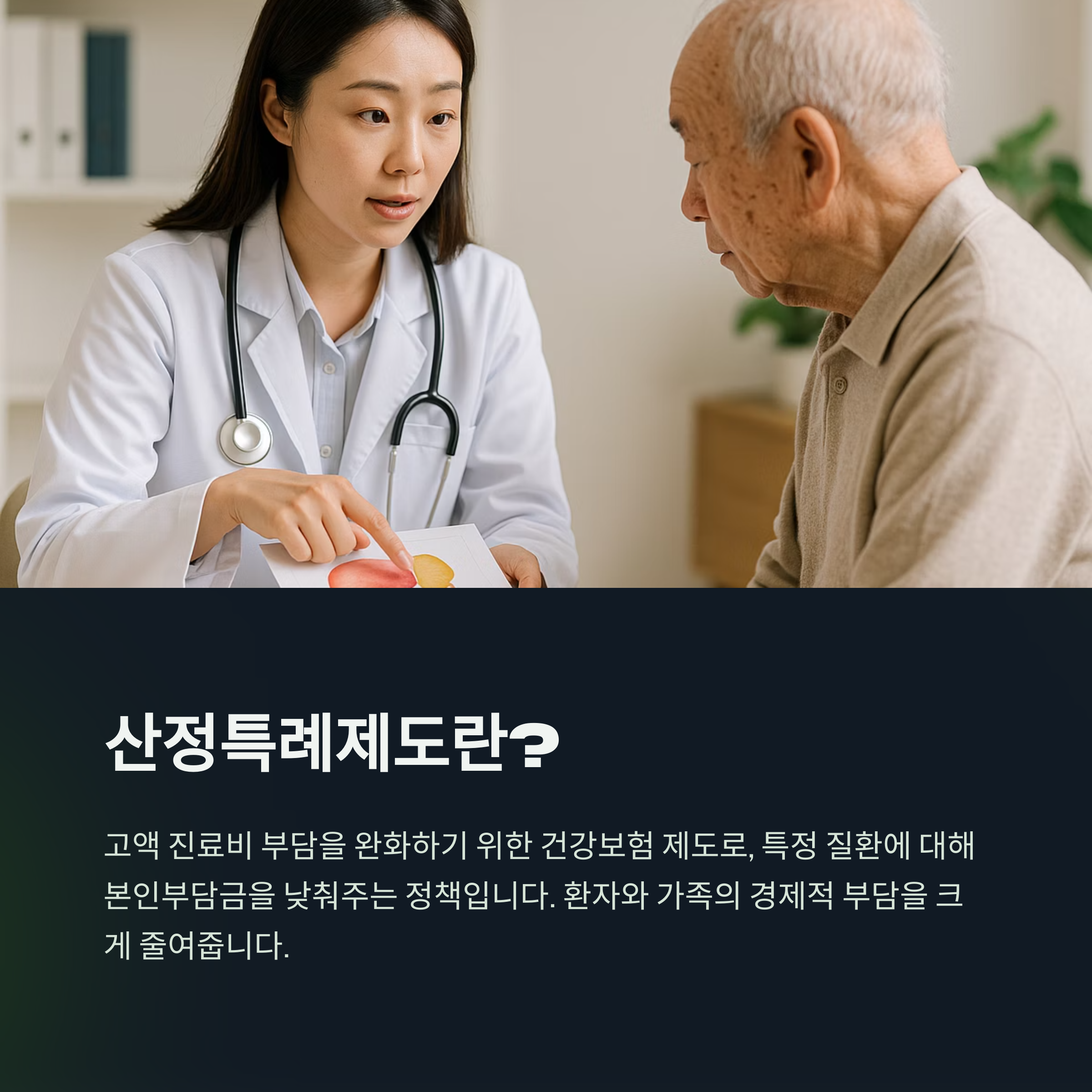 건강보험공단이 시행하는 산정특례제도는 고액의 진료비가 발생하는 중증질환자에게 본인부담률을 낮춰주는 제도입니다.