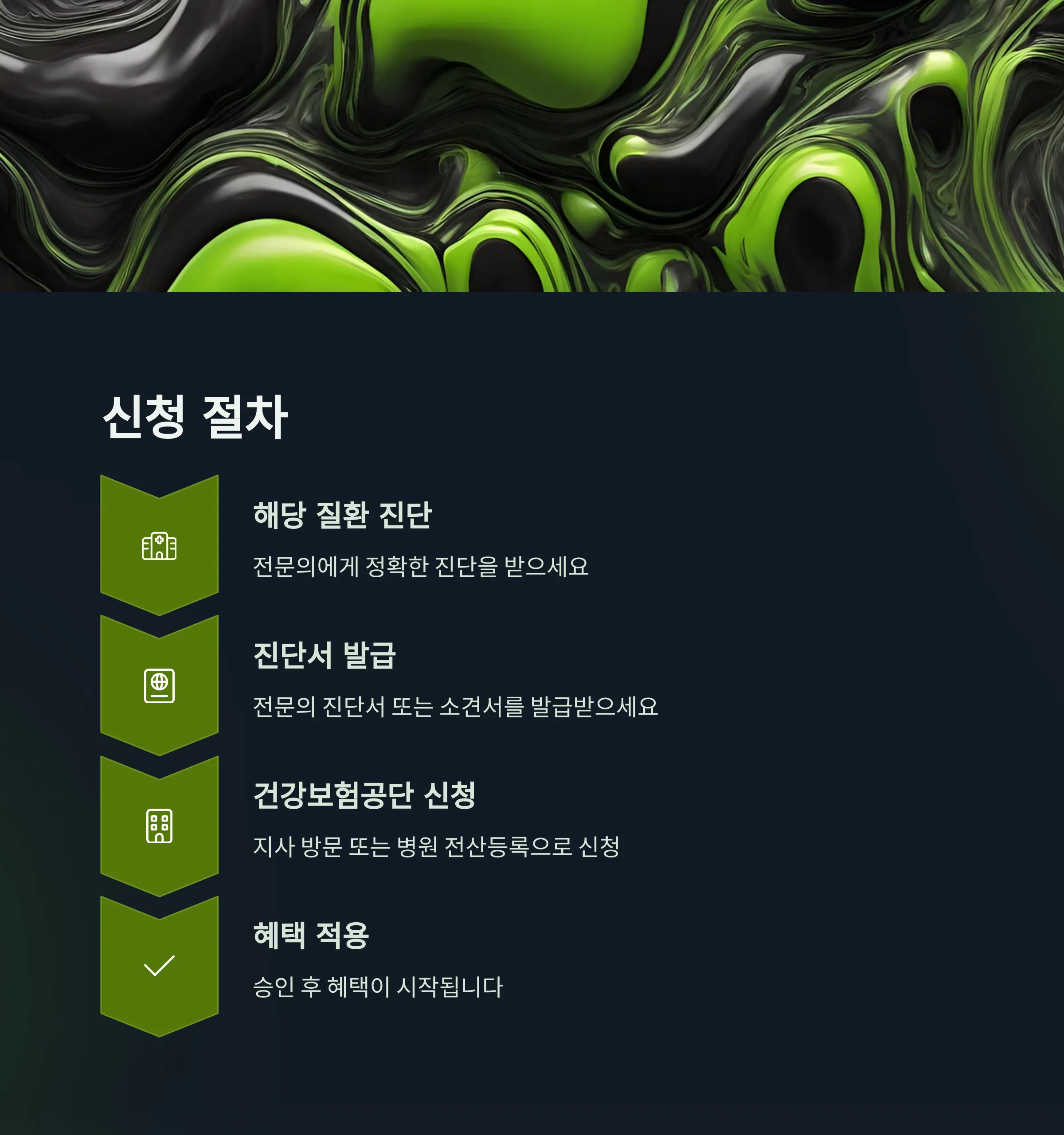 신청 조건은 간단하고, 진단일로부터 30일 내 신청 시 지나간 진료비까지 소급 적용되니 반드시 확인하세요.