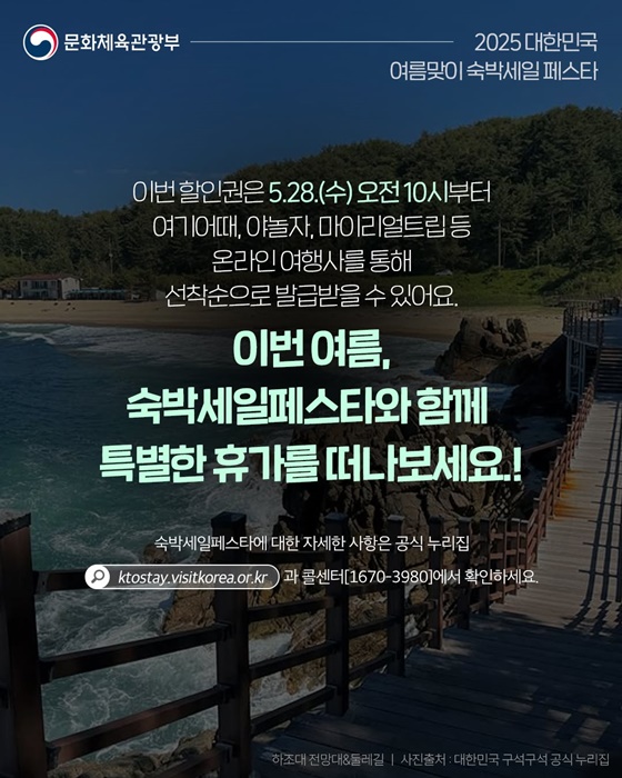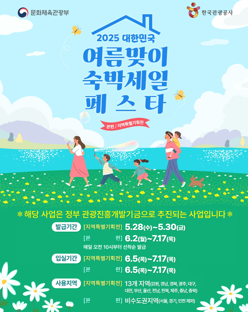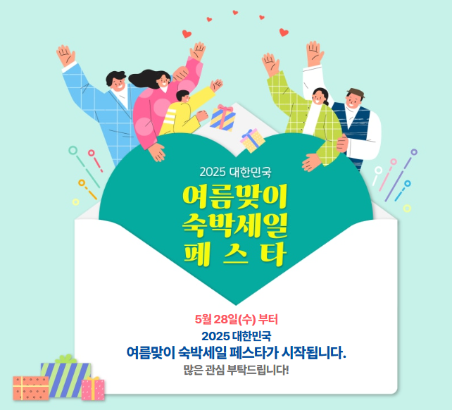 ‘2025 대한민국 여름맞이 숙박세일 페스타’는 지역 관광 활성화를 위해 전국 숙박시설을 대상으로 대규모 할인 쿠폰을 제공하는 행사입니다.