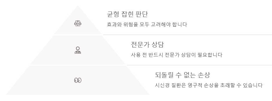 특히 시신경 질환처럼 되돌릴 수 없는 손상이 발생할 가능성이 있다면 사용 전 반드시 전문가 상담과 정밀 진단이 선행되어야 합니다.
