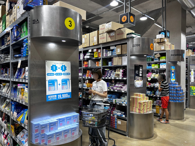 조용한 분위기에서 약사 상담을 통해 약을 구입하는 기존 방식과 달리, 창고형 약국은 대형 매장처럼 상품이 진열되고 소비자가 직접 골라 결제하는 시스템입니다.