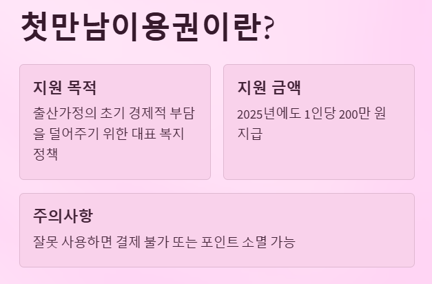 첫만남이용권은 출산가정의 초기 경제적 부담을 덜어주기 위한 대표 복지 정책입니다.