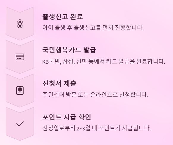 부모 중 한 명이 신청하면 되고, 신청일로부터 약 2~3일 이내에 포인트가 지급됩니다.