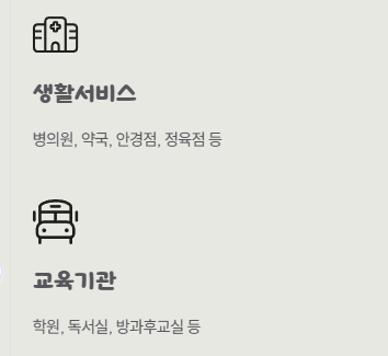 | 생활서비스 | 병의원, 약국, 안경점, 정육점 등 |