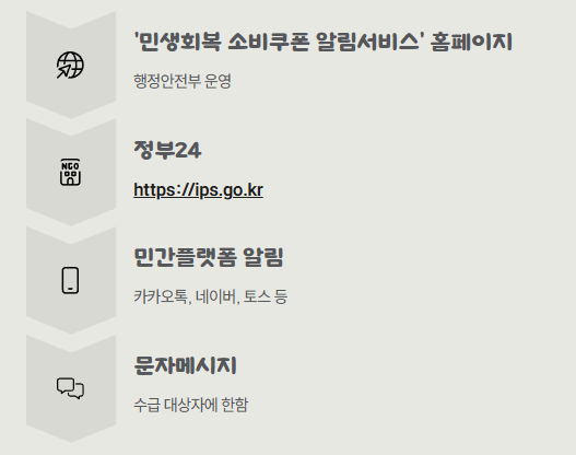 - '민생회복 소비쿠폰 알림 서비스' 홈페이지 (행정안전부 운영)