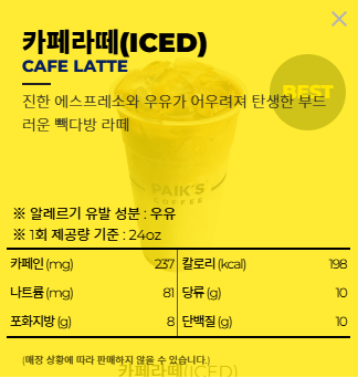 | 할인 제외 | 빽사이즈, 옵션 추가, HOT/ICE 변경 |