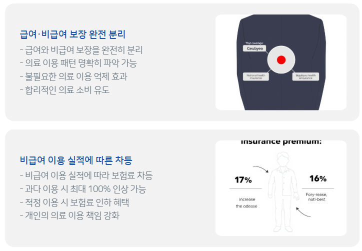 | 보장 구조 | 급여·비급여 통합 구조 | 급여·비급여 명확 분리 구조 |