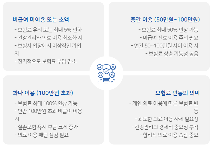 이로 인해 과잉 의료 소비를 자제하는 것이 실질적인 보험료 절감의 핵심 전략입니다.
