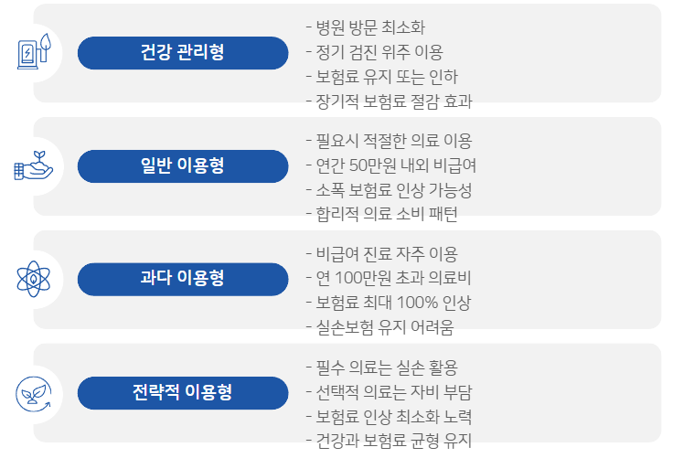 즉, 의료 이용을 최소화하면 보험료 상승을 방어할 수 있습니다.